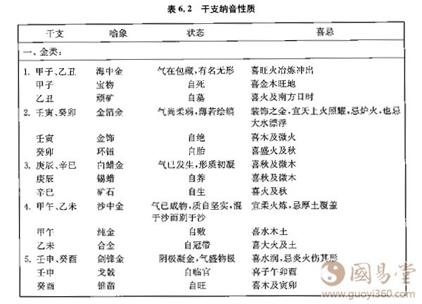 了解了干支与纳音的匹配,接着来看各干支纳音的具体性质和内容: